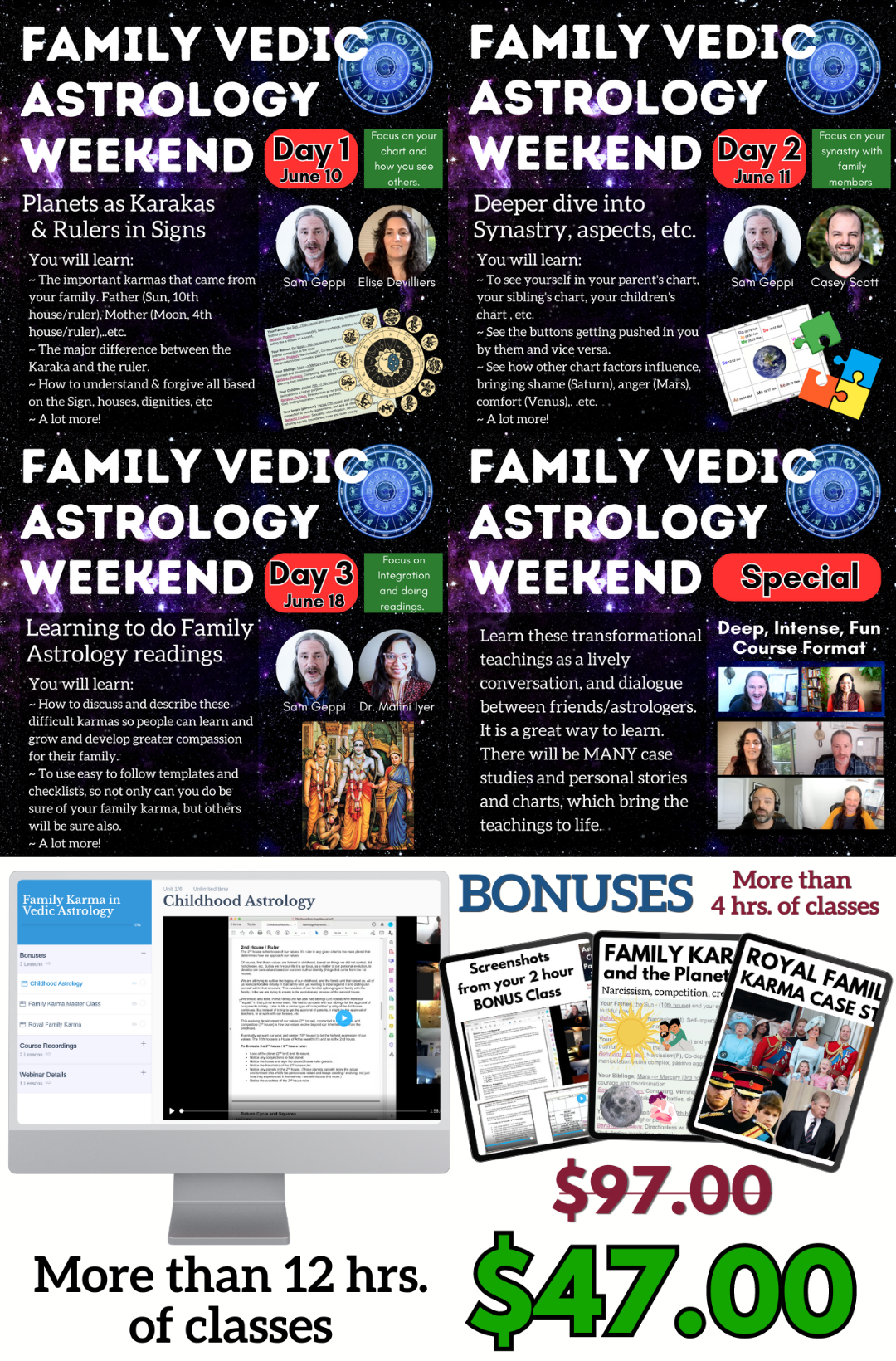 Now of course, I am just as bad as everyone else. I'm not saying any differently. But perhaps the biggest difference is I have also been examining the karmas and family stories of thousands of people over the last two decades, using the lens of Vedic astrology. And I know this course will help you understand these dynamics, even if you don't wind up being a master astrologer yourself.